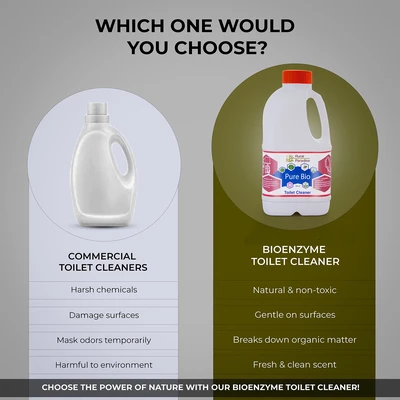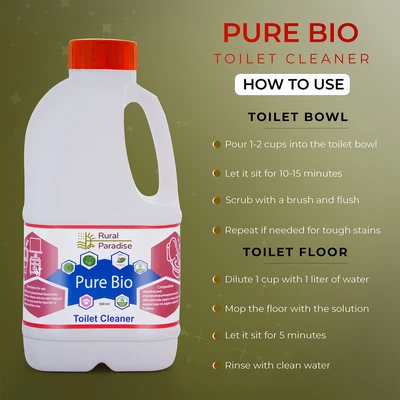"Nature's Cleaning Power in a Bottle: Our Bioenzyme Toilet Cleaner combines the natural strength of Orange Bioenzyme, Soapnuts, and other eco-friendly ingredients to create a powerful, non-toxic, and biodegradable cleaning solution for your toilet bowl."