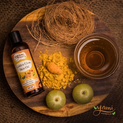 The oil has been 100% naturally formulated with the goodness of ingredients like Manjistha, Vetiver, Rose petals, Avarampoo, Wild turmeric, Turmeric, Licorice, and many more amazing ingredients. They are blended in Organic Sesame Oil to make the Golden Glow Skin Oil