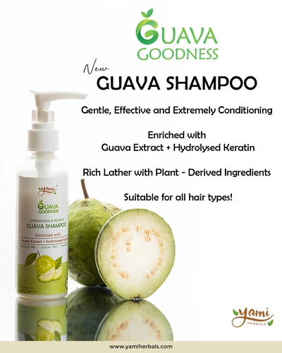 Yami proudly presents its latest innovation: a Vitamin C-rich Guava Shampoo, crafted with love from our organically grown guava fruits. Rigorously tested in our lab by experts, this shampoo is a game-changer... ♥