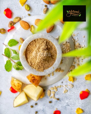 Badam, Pista, Walnut, Organic green gram, Groundnut, Organic lemon peel powder, Sandalwood, Turmeric