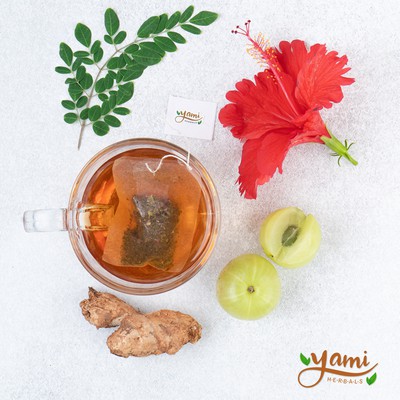 Pure Moringa Leaves, Ginger , Licorice powder, Amla , Hibiscus..