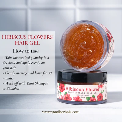 (a) Use it in your pre-poo hair treatment by applying the Hibiscus Flowers Conditioning Hair Gel on your hair, leave for 10-15 minutes and rinse off thoroughly using Yami Herbals - Shampoo or Shikakai Hair Wash Powder